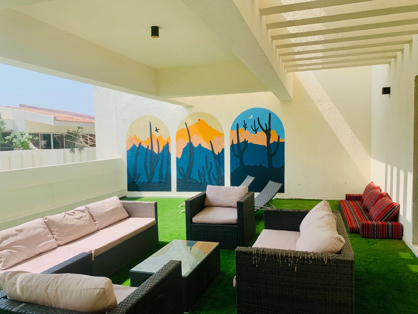 This place is perfect for families! And I need to say they had me at “Chilled Pool” the pool had water sprinklers and a canopy above too. Even in the middle of the summer we had a cool swim. The kids had many activities to do, badminton, bike, ping pong, air hockey. Not a dull moment in this villa. Alice and her staff was very accommodating and did wonderfully to make us feel at home. Great location as it is close to many Dubai malls, restaurant strips and attractions. The red villa has a bedroom downstairs which worked nicely for the grandparents. Kitchen is good for cooking easy meals but we really didn’t have to as there were so many restaurants nearby. We would definitely return. Thanks for hosting us!
